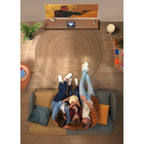За якість звуку відповідає аудіосистема, розроблена у співпраці з JBL. Два вбудовані динаміки загальною потужністю 30 Вт (2 x 15 Вт) створюють гучний та чистий звук. Підтримка технології Dolby Audio забезпечує ефект об'ємного звучання. Крім того, проєктор може працювати як самостійна Bluetooth-колонка, відтворюючи музику з вашого смартфона.
