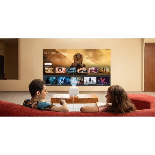 Операційна система: Проєктор працює на базі Smart ОС на ядрі Linux. Перевага: Стабільна робота та наявність офіційно ліцензованих додатків, зокрема Netflix, що гарантує відтворення у високій якості. Пульт ДК: Має окремі кнопки для швидкого запуску Netflix, YouTube та Prime Video.