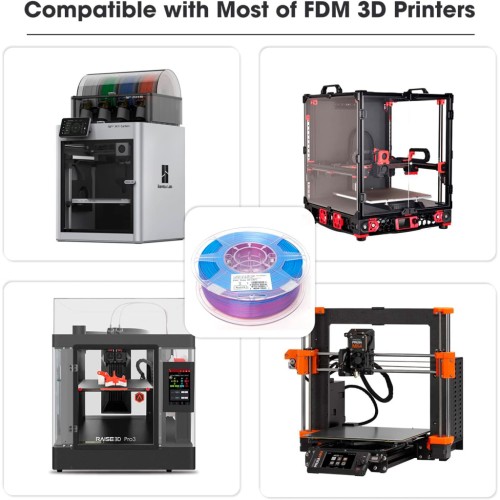 Діаметр філаменту складає 1,75 мм. Це стандартний діаметр для більшості сучасних 3D-принтерів, що робить цей матеріал універсальним та сумісним із широким спектром обладнання. Велика котушка дозволяє друкувати тривалий час без необхідності частої заміни матеріалу, що є особливо зручним при створенні об'ємних моделей або серійних виробів.