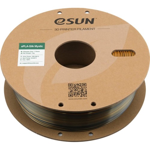 ePLA-Silk Mystic Filament від eSUN, що є втіленням інновацій у світі 3D-друку, цього разу виходить на новий рівень з унікальним поєднанням кольорів: золото, зелений і чорний. Цей 1-кілограмовий матеріал діаметром 1.75 мм створений для того, щоб надихнути та переосмислити традиційні методи 3D-друку, додаючи у кожну модель відчуття глибини та розкоші. Завдяки своєму унікальному поєднанню кольорів, ePLA-Silk Mystic надає об'єктам, створеним на 3D-принтері, елегантності та вишуканості.
