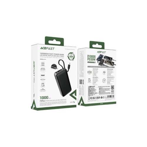 Батарея універсальна Acefast 10000mAh 30W PD, USB-C witch cable, USB-A, Li-Pol, M7 Black (6974316283379)