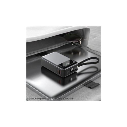 Батарея універсальна Acefast 20000mAh 65W PD, QC/3.0 USB-A+USB-C In/Out,build-in cable M21 Black-Gray (6974316283898)