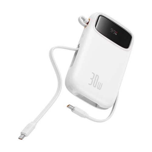 Завдяки невеликій вазі та компактним габаритам тобі буде неважко покласти повербанк у рюкзак або сумку перед виходом з дому, щоб мати можливість підзарядити свій смартфон або блютуз навушники прямо на ходу. Корпус Baseus з якісного пластику має матову фактуру, завдяки чому шанс його упустити зводиться до мінімуму. На передній панелі розміщений чіткий LED-дисплей з актуальною інформацією про кількість заряду. І ще одна особливість – вбудований висувний кабель, що легко перетворюється на зручну петлю для перенесення.