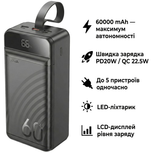 Батарея універсальна HOCO 60000mAh Element PD/20W, QC/22.5W, LED Lamp, Black (J123C / 714736)