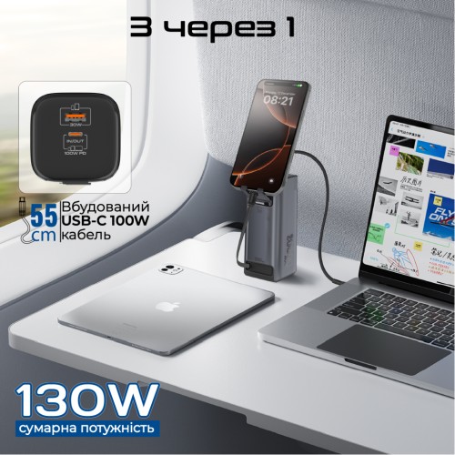 • 3 через 1: Заряджай 3 пристрої одночасно на сумарній потужності до 130 W