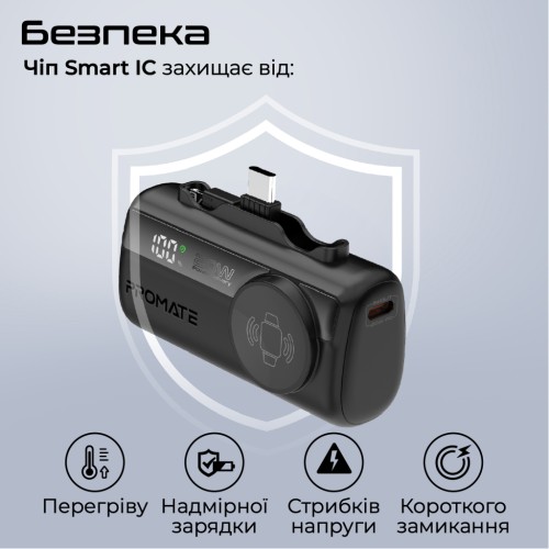 Батарея універсальна Promate 5000mAh PD/20W, Apple Watch charging (powerup-trio.black)