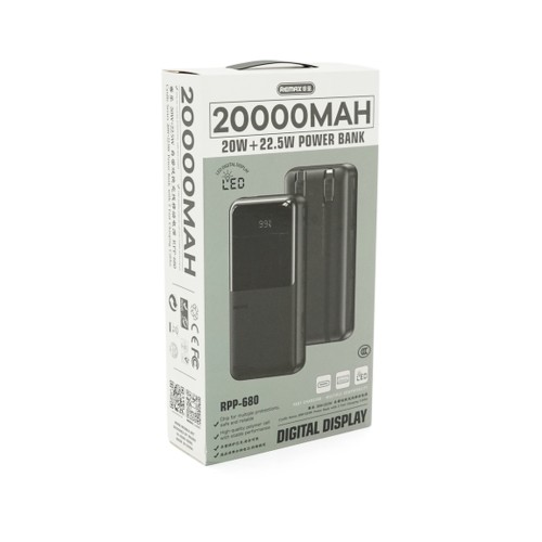 Батарея універсальна Remax 20000mAh, 22.5W, USB+Type-C+Lighting, Black (RPP-680)