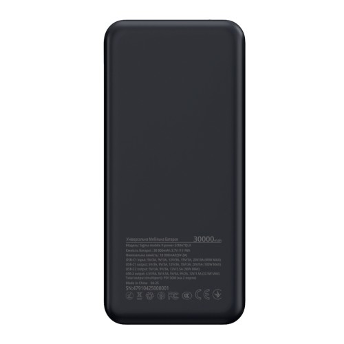 • Велика ємність — 30 000 мА*г — достатньо для кількох повних зарядок ноутбука чи смартфона.