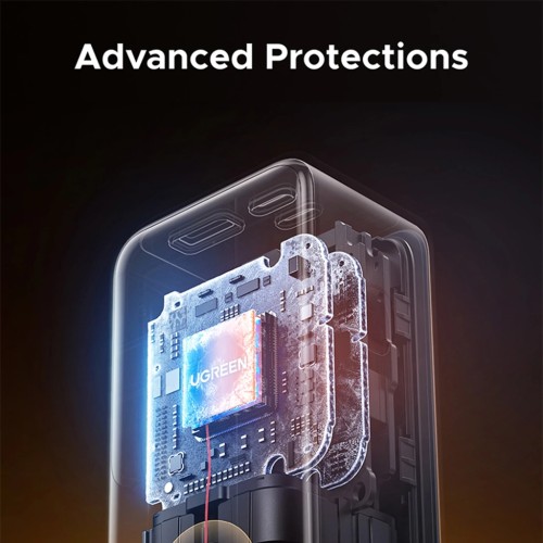 • Комплексний захист Thermal Guard: Безпека керується фірмовою системою Thermal Guard, яка активно моніторить внутрішню температуру пристрою 200 разів на секунду, щоб запобігти перегріванню. Ця система працює в тандемі з 13-рівневою схемою захисту, яка оберігає від перенапруги, перевантаження по струму, коротких замикань та глибокого розряду, гарантуючи, що як повербанк, так і ваша дорога підключена електроніка залишаються в безпеці під час високошвидкісної передачі енергії.