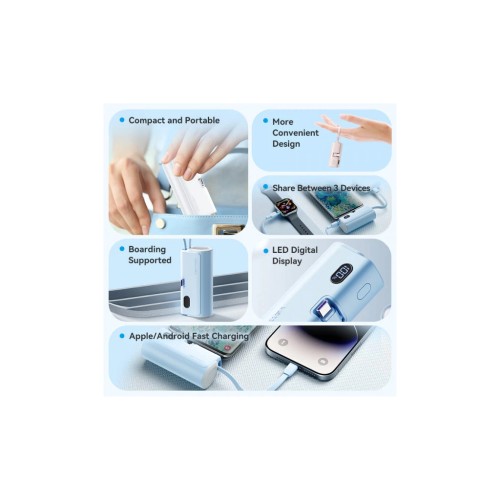 Порт USB Type-С працює з максимальною вихідною потужністю 20 Вт, та з потужністю до 18 Вт на вхід. Кабель Lightning зарядить підключені пристрої з потужністю до 12 Вт, а кабель USB Type-С – з максимальною потужністю 22,5 Вт. Вбудований LED дисплей сповіщатиме про поточний рівень заряду.