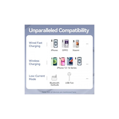 Компактний корпус та невелика вага батареї Vention Magnetic Wireless 5000mAh 20W PD роблять її зручною для користування, зберігання та перенесення. Беріть УМБ на борт літака, вона відповідає стандартним вимогам авіакомпаній до розміру або безпеки.