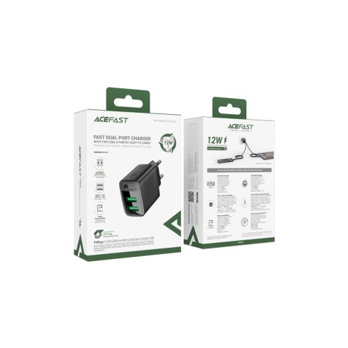 Зарядний пристрій Acefast 2xUSB 12W A86 black (6974316283270)