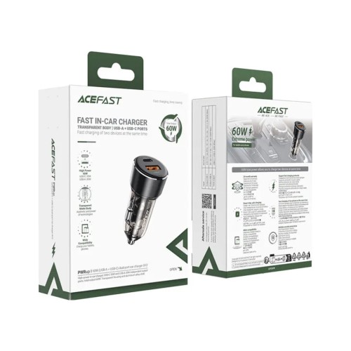 Зарядний пристрій Acefast 2xUSB 60W (USB-C + USB-A) B12 є невід'ємним атрибутом для сучасних автовласників, які бажають завжди бути на зв'язку. Цей стильний автомобільний адаптер вирізняється своєю надійністю та передовими технологіями, що роблять процес зарядки максимально зручним і швидким. Він обладнаний двома портами — USB-A та USB Type-C, що дозволяє одночасно заряджати різноманітні гаджети, такі як смарт годинники, смартфони, фітнес-браслети та TWS навушники.