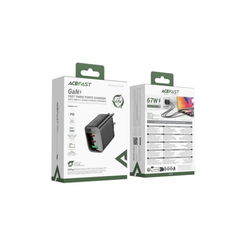 Зарядний пристрій Acefast 2xUSB-C + 1xUSB 67W GaN black (6974316284048)