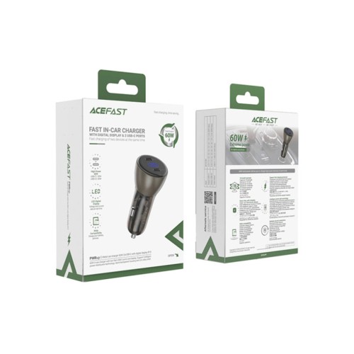 Зарядний пристрій Acefast B10 Car Charger 2xUSB-C 60W with digital display Metal Black (6974316282358)