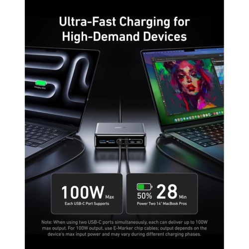 Потужність: USB-C: USB-C1 / C2 / C3 / C4: 5.0V/3.0A(15.0W) // 9.0V/3.0A(27.0W) // 10.0V/2.25A(22.5W) // 15.0V/3.0A(45.0W) // 20.0V/5.0A(100.0W) ; USB-A: USB-A1 / A2: 5.0V/3.0A(15.0W) // 9.0V/2.0A(18.0W) // 10.0V/2.25A(22.5W) // 12.0V/1.5A( 18.0W)