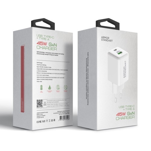 Зарядний пристрій Armorstandart AR372 45W GaN Type-C + USB White (ARM77550)