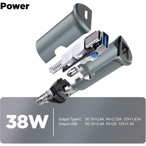 Car USB Type-C PD20W + USB QC 3.0 Grey