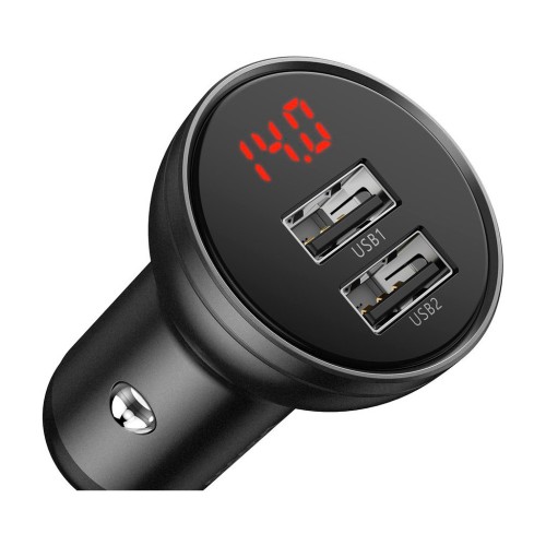 Digital Display Dual USB 4.8A Car Charger 24W+Thre