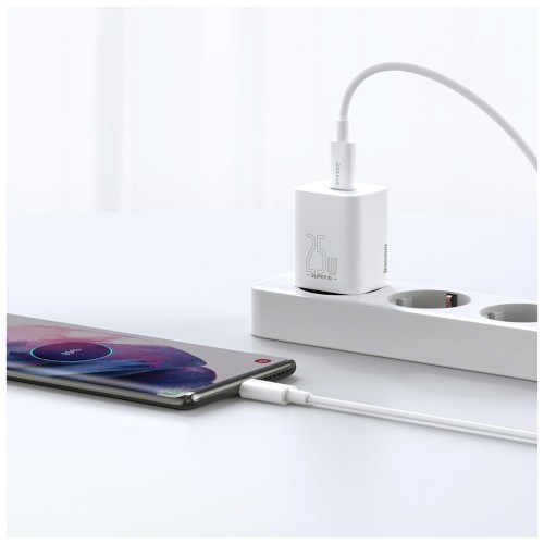 Мережевий зарядний пристрій Baseus Super Si Quick Charger 1C 25 Вт EU Біле (CCSP020102) - це компактний, зручний, елегантний, інноваційний та стильний пристрій, виготовлений із високоякісних матеріалів. Даний зарядний пристрій має 1 Type-C (USB Type-C PD3.0) потужністю 3 A, USB Type-C порт підтримує сучасні стандарти швидкого заряджання - Power Delivery 3.0, Quick Charge 3.0, Samsung AFC, завдяки яким процес відновлення заряду Ваших аксесуарів прискорюється в кілька разів - це допоможе Вам швидко заряджати різні девайси, а вихідна потужність заряджання сягає 25 Вт.