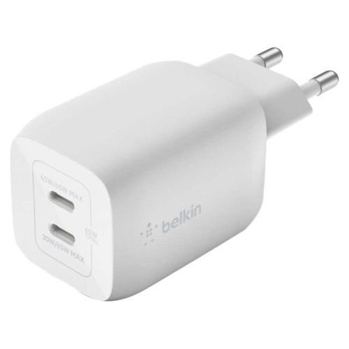 Зарядний пристрій Belkin 65W 2хUSB-С GAN PD PPS white (WCH013VFWH)