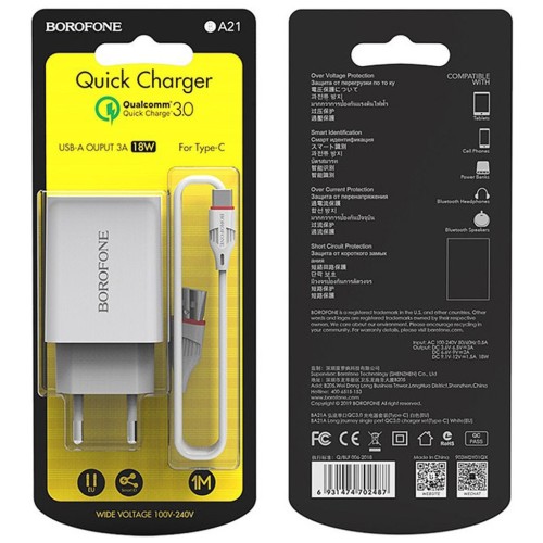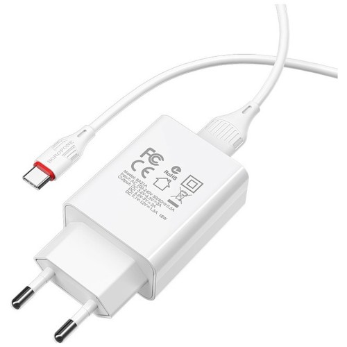 Зарядний пристрій BOROFONE BA21A Long journey single port QC3.0 charger set (Type-C) White (BA21ACW)