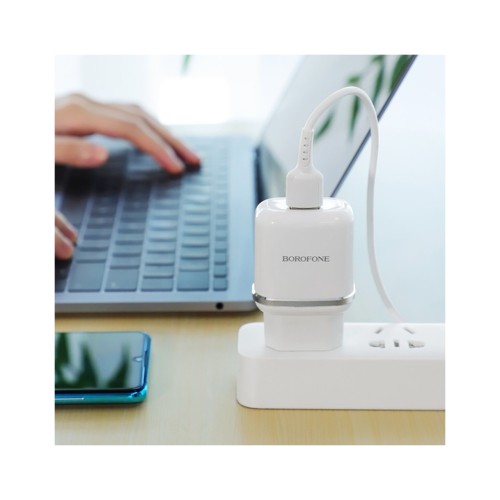 Зарядний пристрій BOROFONE BA36A USB QC3.0 18W + cable USB to USB-C white (6931474716019)