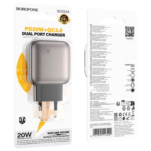 Особливу увагу приділено безпеці вашої техніки: вбудовані захисти від перенапруги, перегріву, перевантаження та короткого замикання забезпечують надійність і безпеку під час зарядки. Легка вага і компактний форм-фактор роблять цей зарядний пристрій ідеальним супутником для подорожей. BOROFONE BAS54A Absolute — це вибір, який поєднує в собі ефективність, інноваційні технології та безкомпромісну якість. Відчуйте справжню свободу дії з цим винятковим зарядним пристроєм у вашому арсеналі!