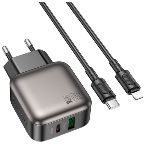 Зарядний пристрій BOROFONE BAS55A Absolute 1xUSB-C PD30W + 1xUSB QC3.0 + cable USB-C to Lightning Black (6941991116247)