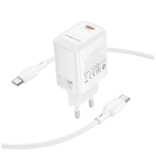 Зарядний пристрій BOROFONE BN28 Fuente USB-C PD30W + cable USB-C to USB-C White (6941991120312)
