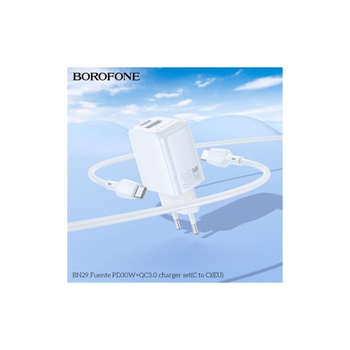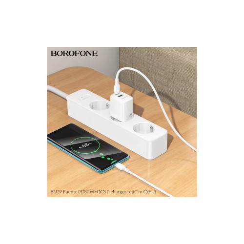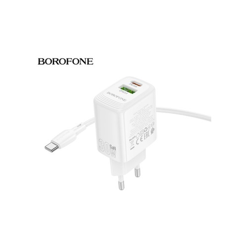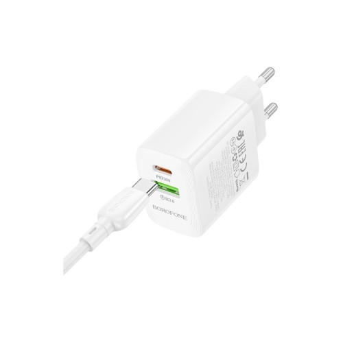 Зарядний пристрій BOROFONE BN29 Fuente 1xUSB-C PD30W + 1xUSB QC3.0 White (6941991120329)