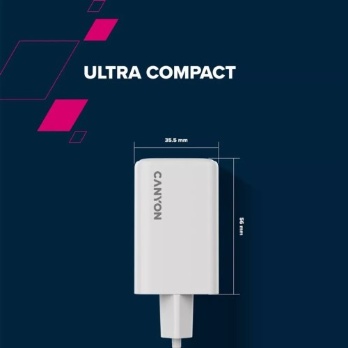 Зарядний пристрій Canyon CU65ACC GaN 65W 2xPD 1xQC EU White (CNS-CUW65ACC)