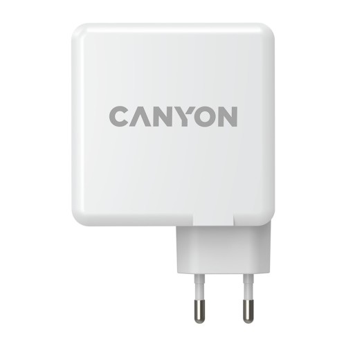 Мережевий зарядний пристрій Canyon CND-CHA100W01 виконаний у білому корпусі. Блок живлення зроблений із застосуванням напівпровідників із основою з нітриду галію. При компактних розмірах він зберігає високу потужність на рівні 100 Вт, властиву зарядним пристроям. Завдяки такій потужності зарядний блок здатний заряджати не лише мобільну техніку, а й ноутбуки.