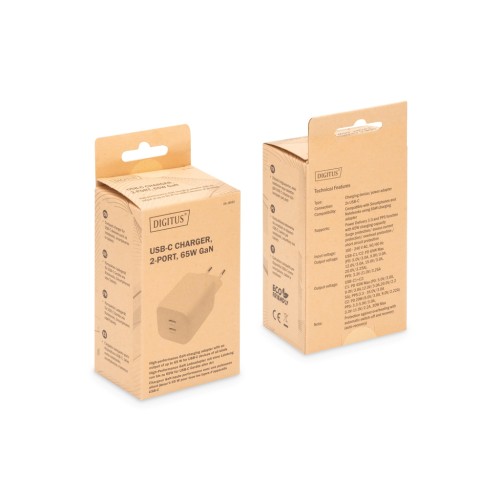 Зарядний пристрій Digitus 2xUSB-C PD65W GaN (DA-10063)