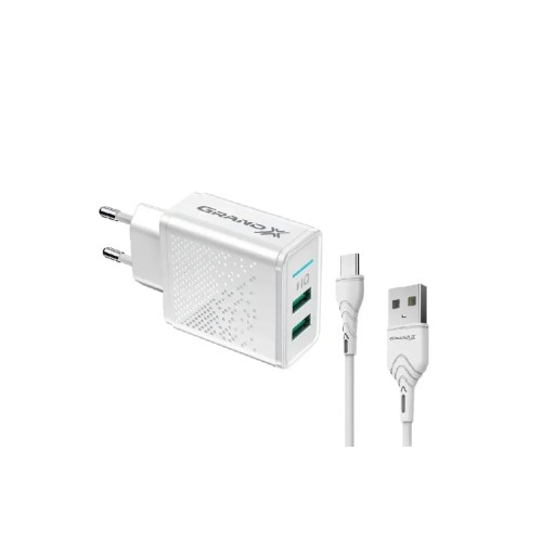 • Зарядний пристрій Grand-X CH-60WT 2USB 5V 3.1A + USB-C cable (CH-60WT)