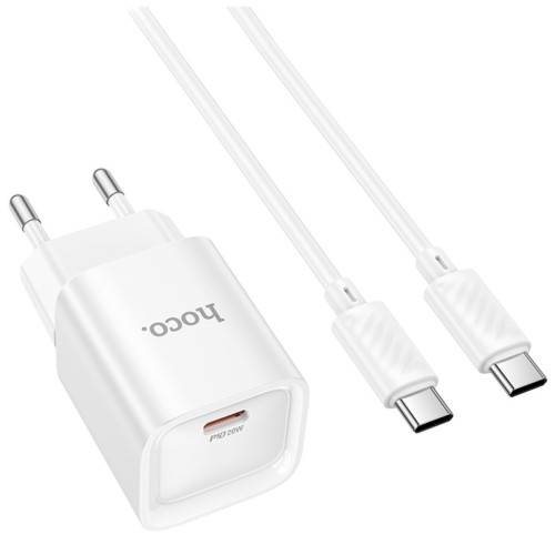 Зарядний пристрій HOCO C146A Charm USB-C PD20W + cable USB-C to USB-C White (6942007630269)