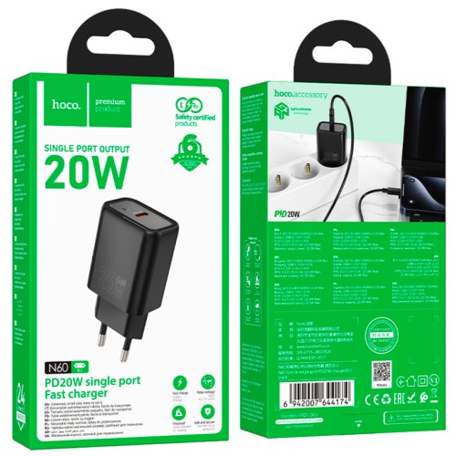 Зарядний пристрій HOCO N60 Gentle USB-C PD20W Black (6942007644174)