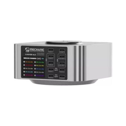 Зарядний пристрій MECHANIC 10xUSB-C PD + Wireless Charging 15W LED indication 300W black (X-Power Max)