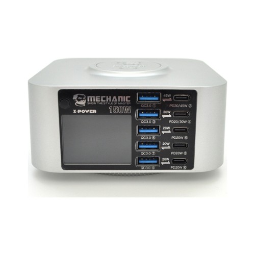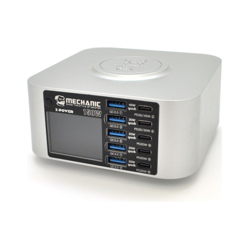 Зарядний пристрій MECHANIC 5xUSB-C PD + 5xUSB QC3.0 + Wireless Charging 15W LED indication 150W black (X-Power-150W)