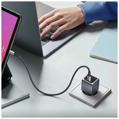Завдяки використанню технології GaN (нітрид галію), зарядний пристрій має компактні розміри та високу енергоефективність. Це забезпечує менший нагрів і більш стабільну роботу в порівнянні з традиційними зарядними пристроями.