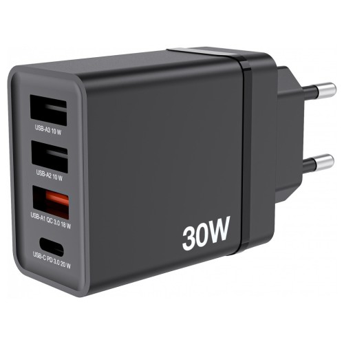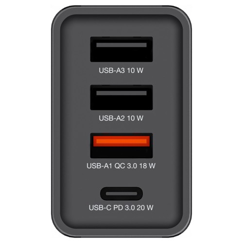 Завдяки підтримці швидкої зарядки Fast Charging, ви значно скоротите час поповнення енергії пристроїв. Максимальна вихідна потужність у 30 Вт дозволяє одночасно заряджати декілька гаджетів без втрати ефективності. Зарядний пристрій оснащено трьома USB портами та одним USB Type-C портом, що робить його надзвичайно універсальним у використанні.