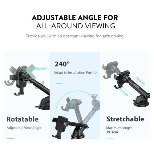 Тримач телефону в автомобіль UGREEN LP200 - це універсальне і зручне рішення для використання вашого смартфона під час поїздок. Він призначений для кріплення телефону на присоску, яка надійно прикріплюється до скла або гладкої поверхні в автомобілі.