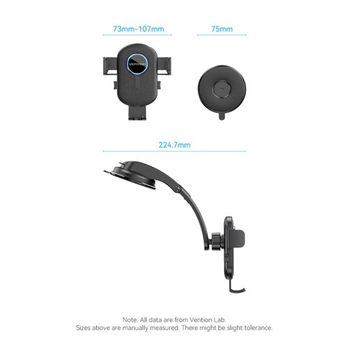 Універсальний автотримач Vention 4.7-7.2" затискач One Touch, присока, чорний (KSCB0)