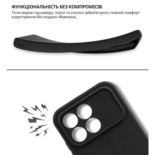 Чохол легко встановлюється, щільно прилягає до поверхні смартфона, не залишаючи повітряних зазорів, які могли б накопичувати пил, бруд або вологу. Легкий і непомітний, він не додає зайвого об'єму чи ваги вашому пристрою, забезпечуючи надійний захист від ударів, пошкоджень і вологи.
