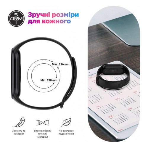 Ремінець також гарантує надійність утримання трекера. Він оснащений металевим кріпленням, яке надійно фіксує ваш пристрій і не допускає його випадання під час активних тренувань. Застібка ремінця дозволяє вам легко регулювати його довжину, забезпечуючи вам комфортну посадку на руці.