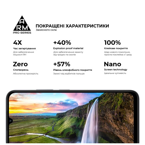 Захисне скло Armorstandart Pro Series має оптимальні габарити та товщину на 0,3 мм. Передбачено вирізи під усі датчики, камери та роз'єми.