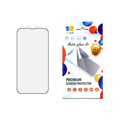 Захисне скло Drobak Matte Glass A+ ідеально облягає контури iPhone, забезпечує максимальну роздільну здатність дисплея та відмінну чутливість дотику. Матове (антивідблискове) покриття. Заокруглені краї стійкі до подряпин і захищають від сколів. Олеофобне покриття значно зменшує кількість відбитків пальців та інших забруднень на поверхні айфону. Скло пройшло випробування на удароміцність із падінням пристрою з висоти 1.8 метра.