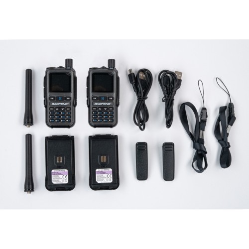 Рація - 2 шт Зарядний кабель USB Type C - 2 шт Антена - 2 шт Акумулятор - 2 шт Кліпса для кріплення на ремінь - 2 шт Шнурок на руку - 2 шт Інструкція (англ) - 1 шт