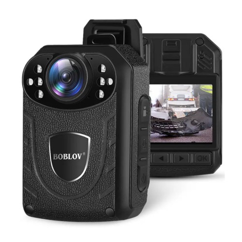 Поліцейська камера – нагрудний відеореєстратор Boblov KJ21 з якістю запису відео: 2304x1296/30fps; 1920x1080/30fps; 1280x720/30fps. Циклічний запис відео: 5/10/15/20/30 хв. Працює до 12 годин від акумуляторної батареї ємністю 2850 мАг. Конструкція кнопок дозволяє зручно та швидко починати запис відео. Гумова оболонка забезпечує водонепроникність і довговічність. Є меню українською мовою.