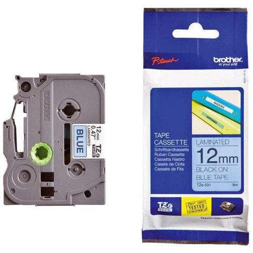 Brother 12mm Laminated blue, Print black (TZE531) - ламінована клейка стрічка синього кольору.